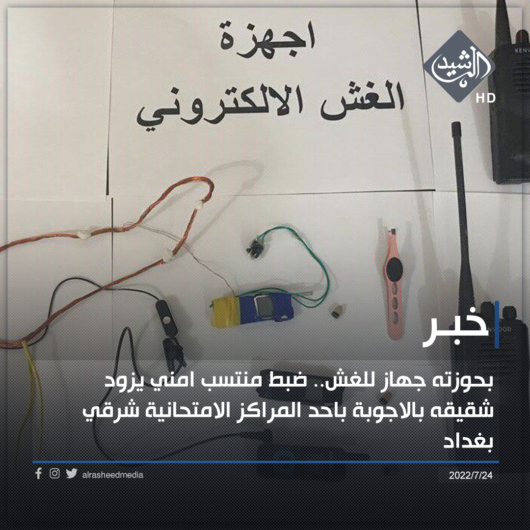 بحوزته جهاز للغش.. ضبط منتسب امني يزود شقيقه بالاجوبة باحد المراكز الامتحانية شرقي بغداد