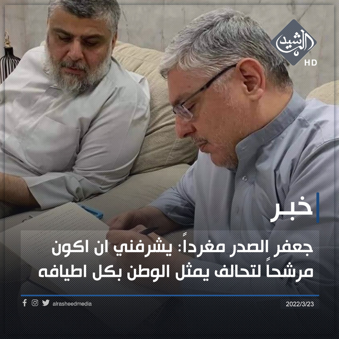 جعفر الصدر مغرداً: يشرفني ان اكون مرشحاً لتحالف يمثل الوطن بكل اطيافه