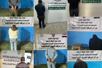 قوات الحدود تعتقل (10) متهمين بحوزتهم مواد مخدرة في البصرة وديالى وواسط وميسان