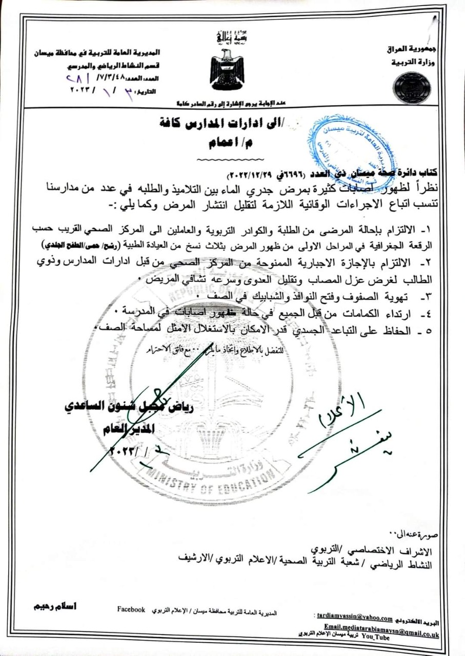 بالوثيقة.. تسجيل إصابات بمرض "جدري الماء" في مدارس ميسان