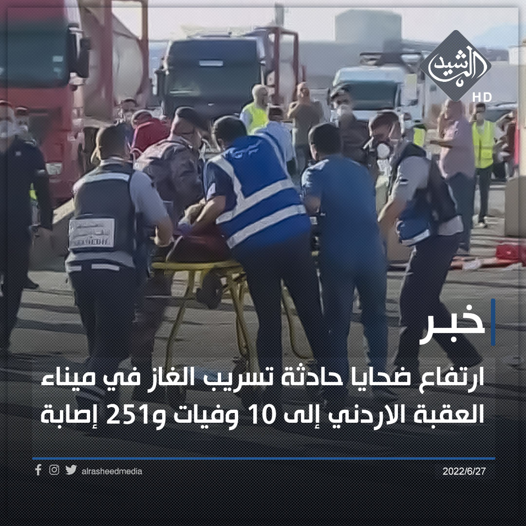ارتفاع ضحايا حادثة تسريب الغاز في ميناء العقبة الاردني إلى 10 وفيات و251 إصابة