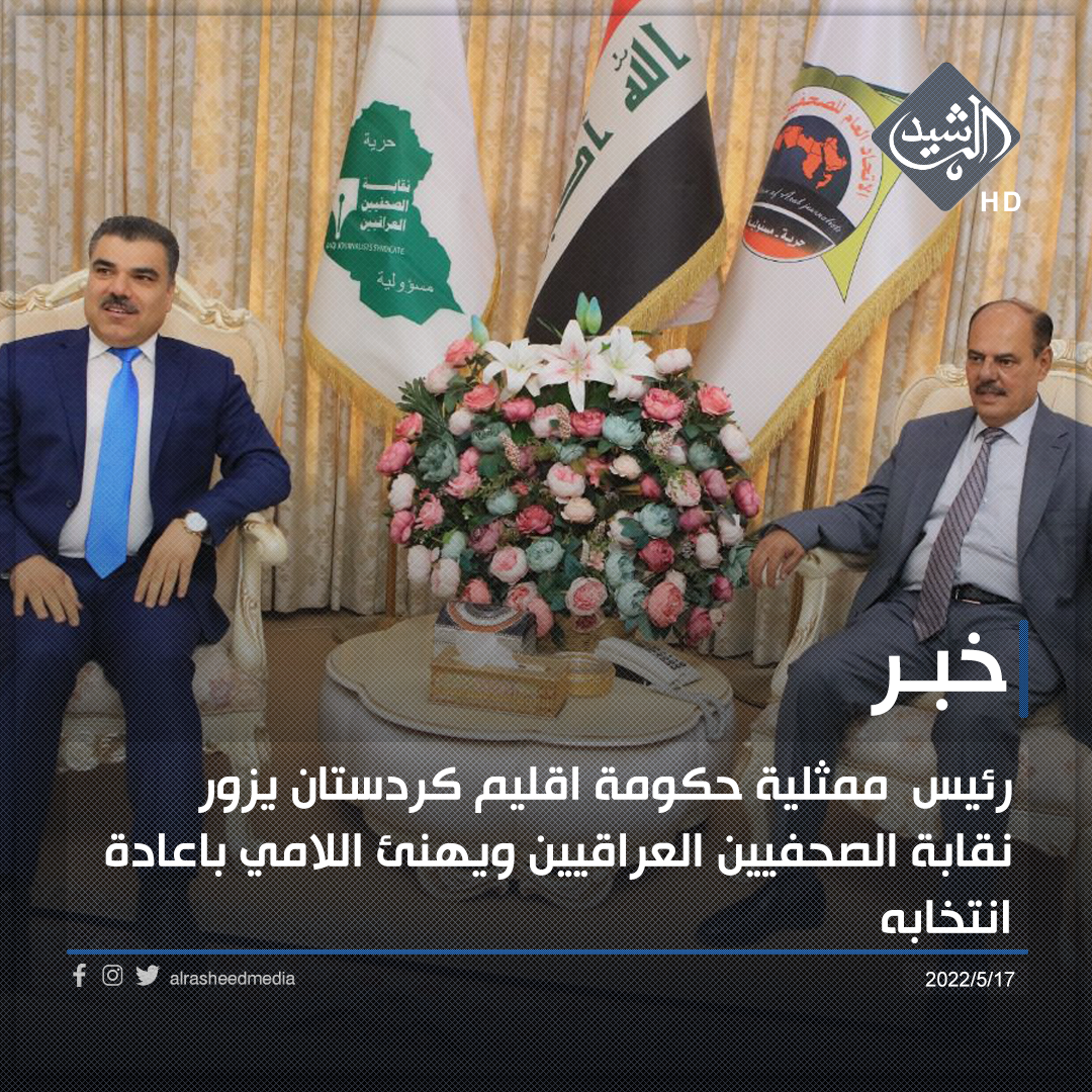 رئيس ممثلية حكومة اقليم كردستان يزور نقابة الصحفيين العراقيين ويهنئ اللامي باعادة انتخابه
