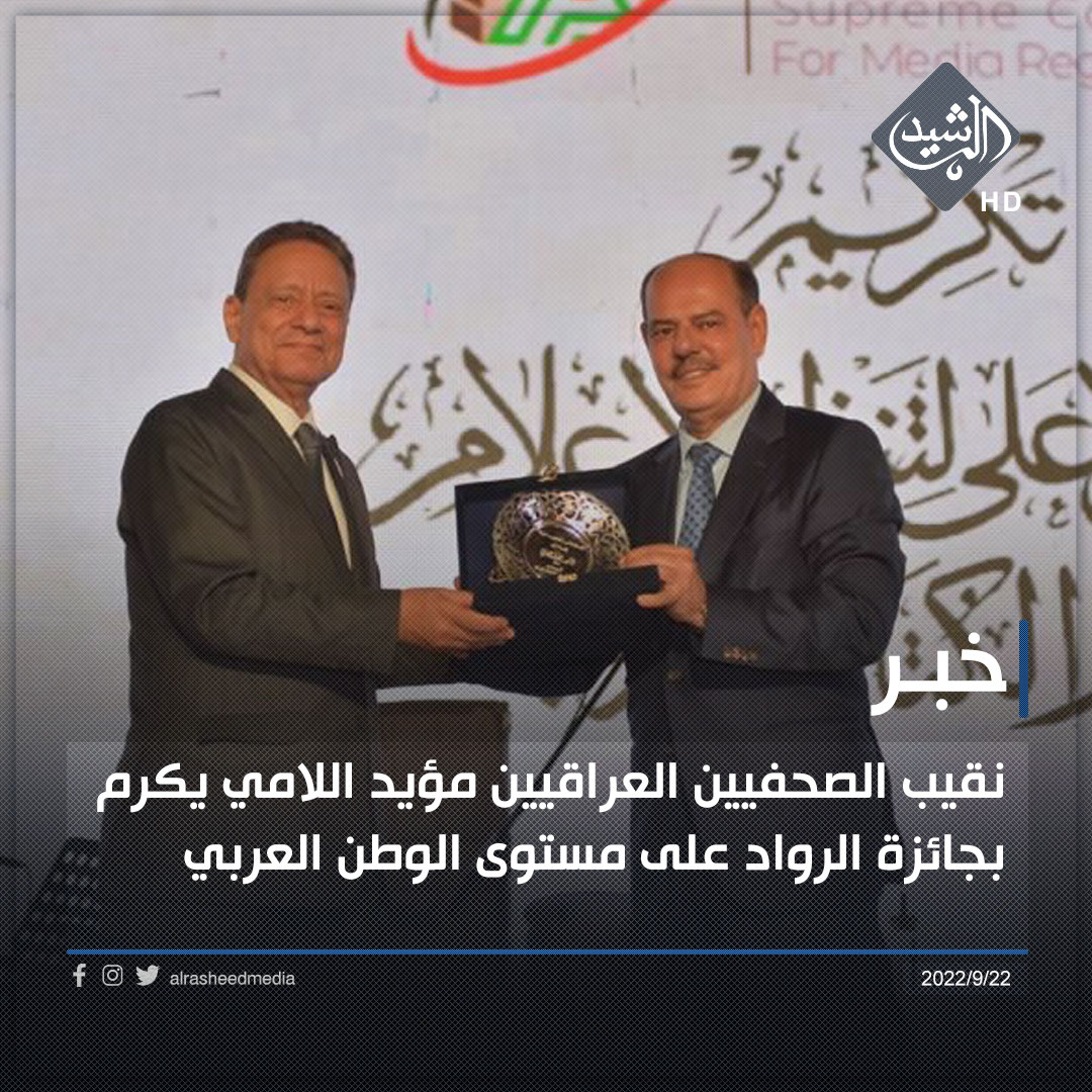 نقيب الصحفيين العراقيين مؤيد اللامي يكرم بجائزة الرواد على مستوى الوطن العربي