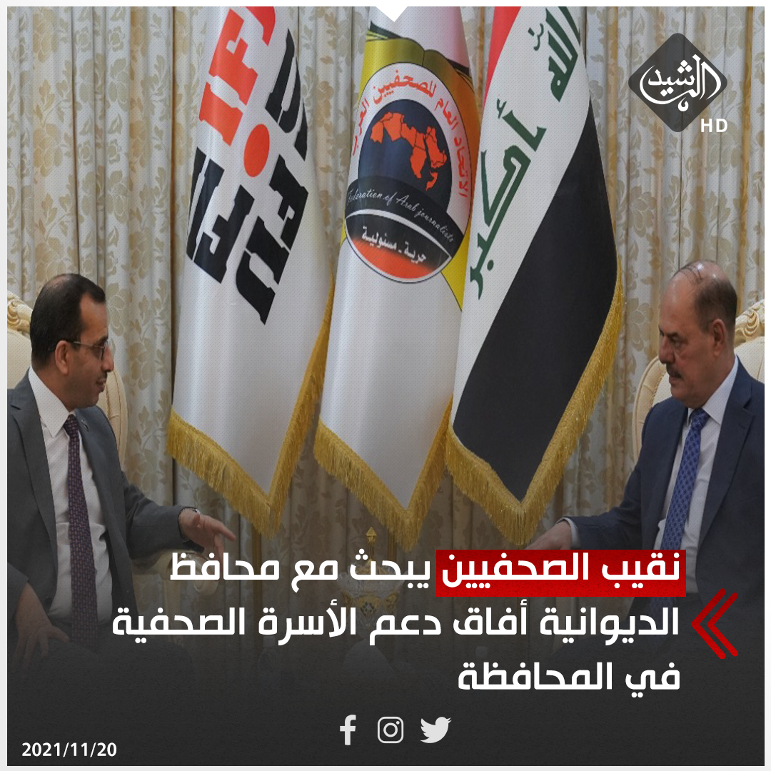 نقيب الصحفيين يبحث مع محافظ الديوانية أفاق دعم الأسرة الصحفية في المحافظة