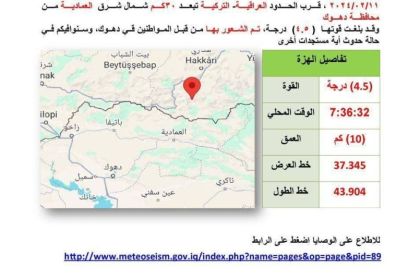 هزة أرضية تضرب قضاء سنجار بنينوى