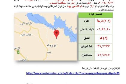 النقل: هزة أرضية بقوة (3،1) درجة شمال غربي الكوت