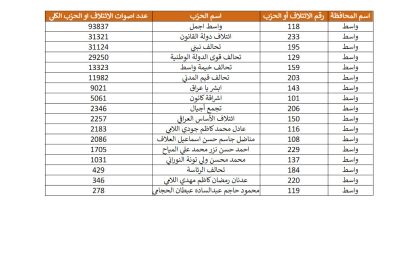 نتائج اولية: قائمة "واسط اجمل" تفوز بفارق كبير عن باقي المنافسين بالمحافظة