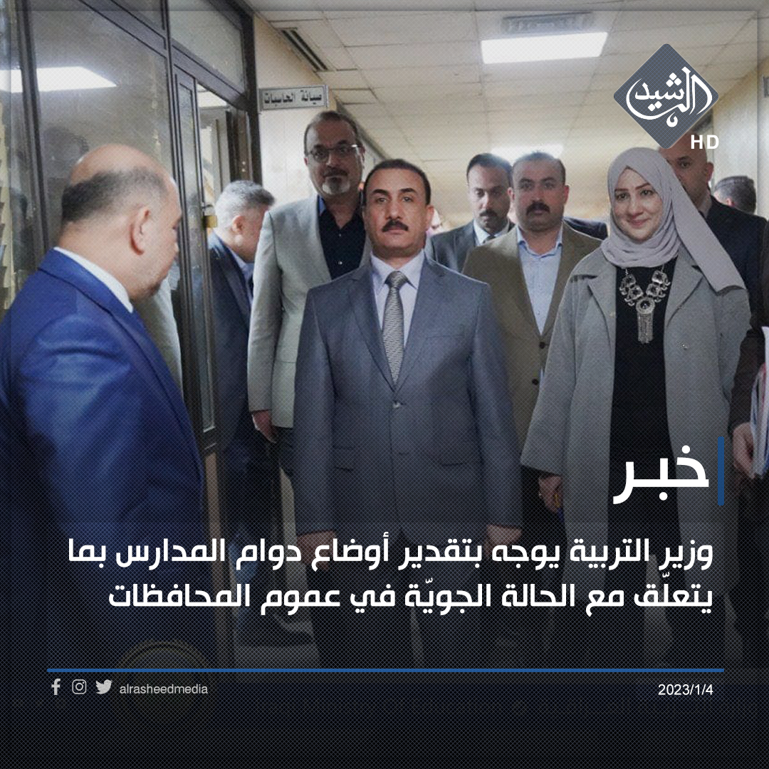 وزير التربية يوجه بتقدير أوضاع دوام المدارس بما يتعلّق مع الحالة الجويّة في عموم المحافظات
