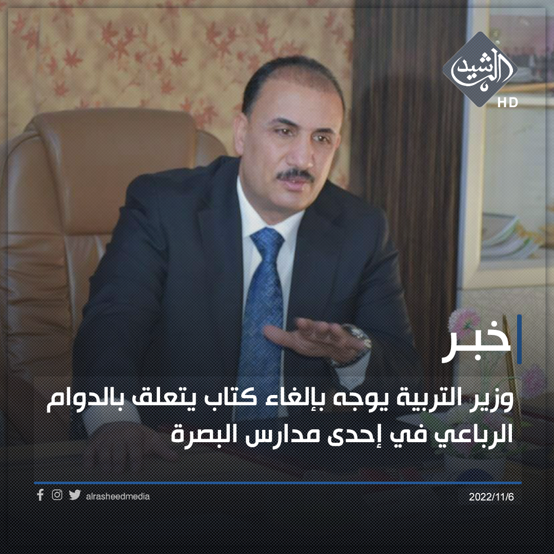 وزير التربية يوجه بإلغاء كتاب يتعلق بالدوام الرباعي في إحدى مدارس البصرة