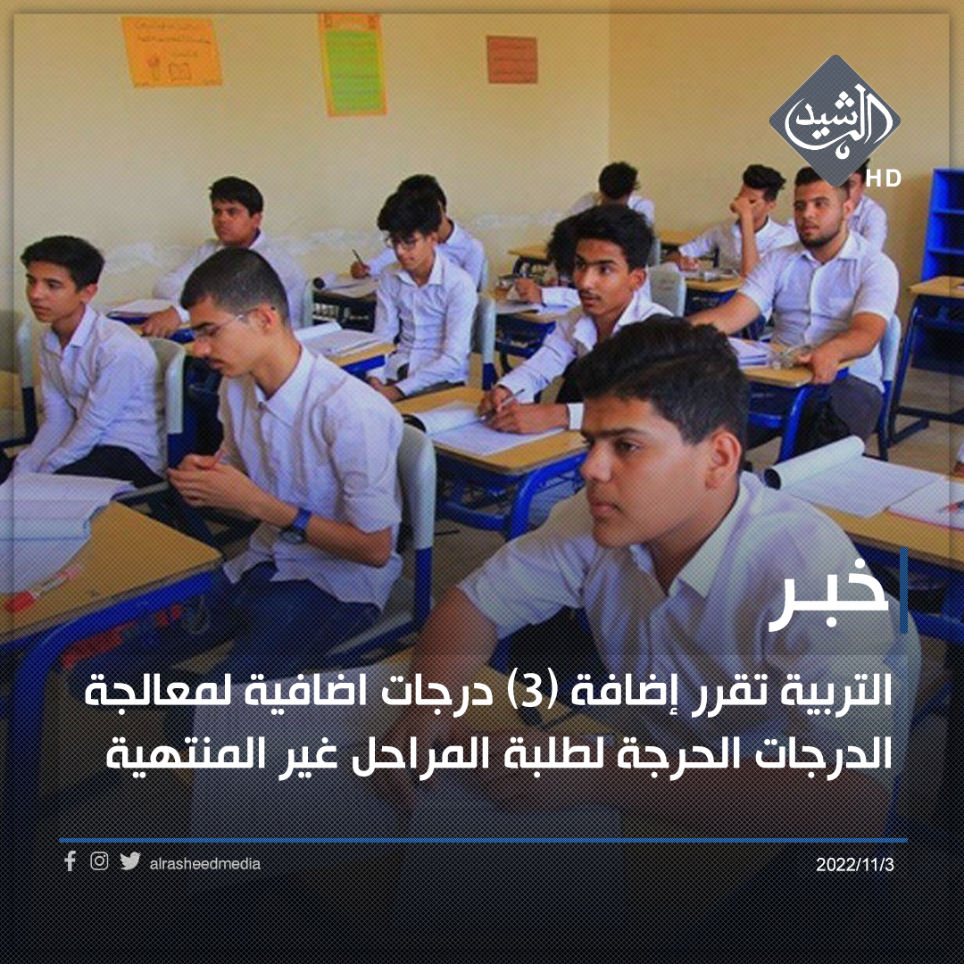 التربية تقرر إضافة (3) درجات اضافية لمعالجة الدرجات الحرجة لطلبة المراحل غير المنتهية