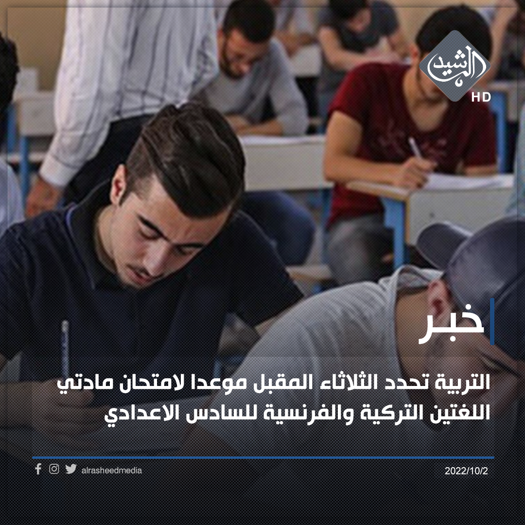 التربية تحدد الثلاثاء المقبل موعدا لامتحان مادتي اللغتين التركية والفرنسية للسادس الاعدادي