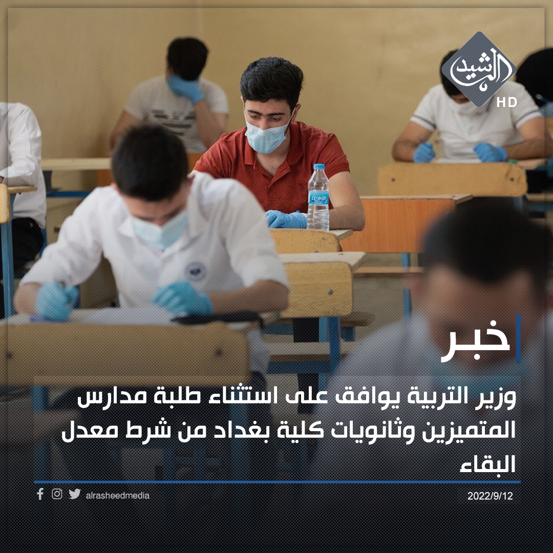 وزير التربية يوافق على استثناء طلبة مدارس المتميزين وثانويات كلية بغداد من شرط معدل البقاء