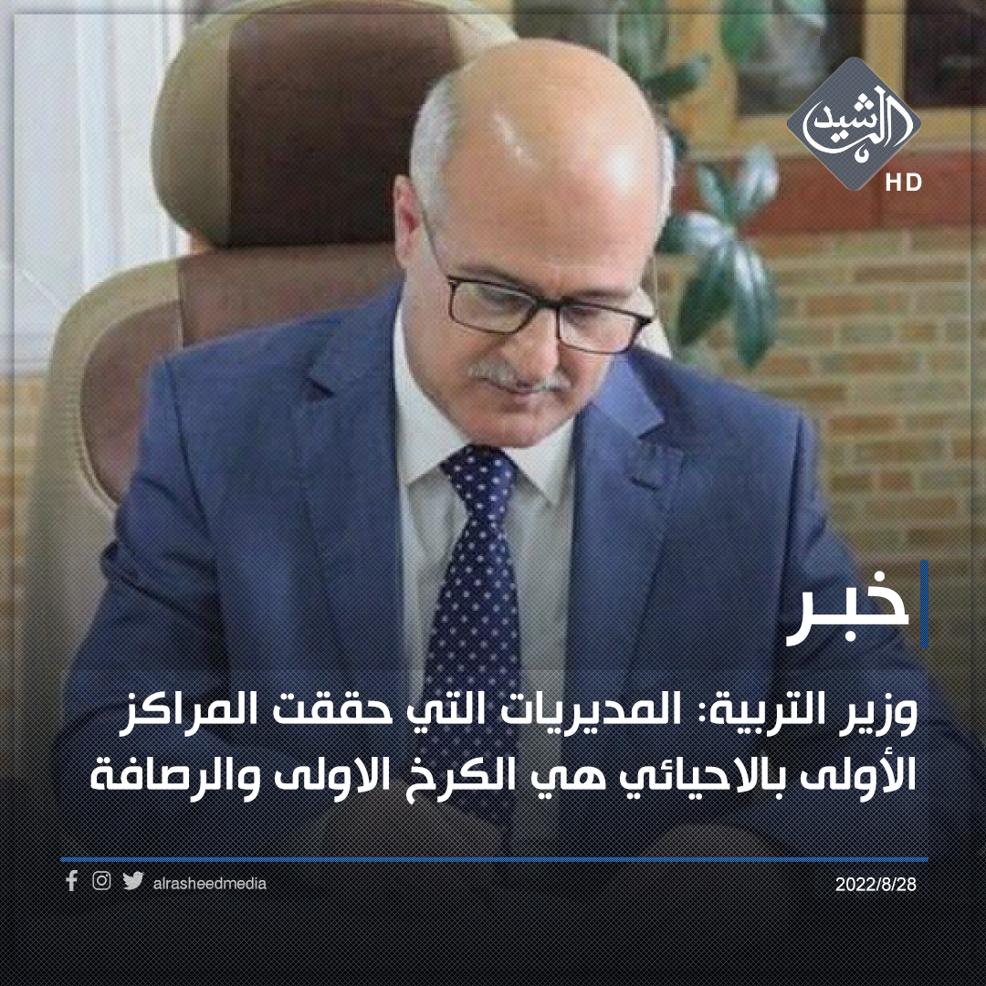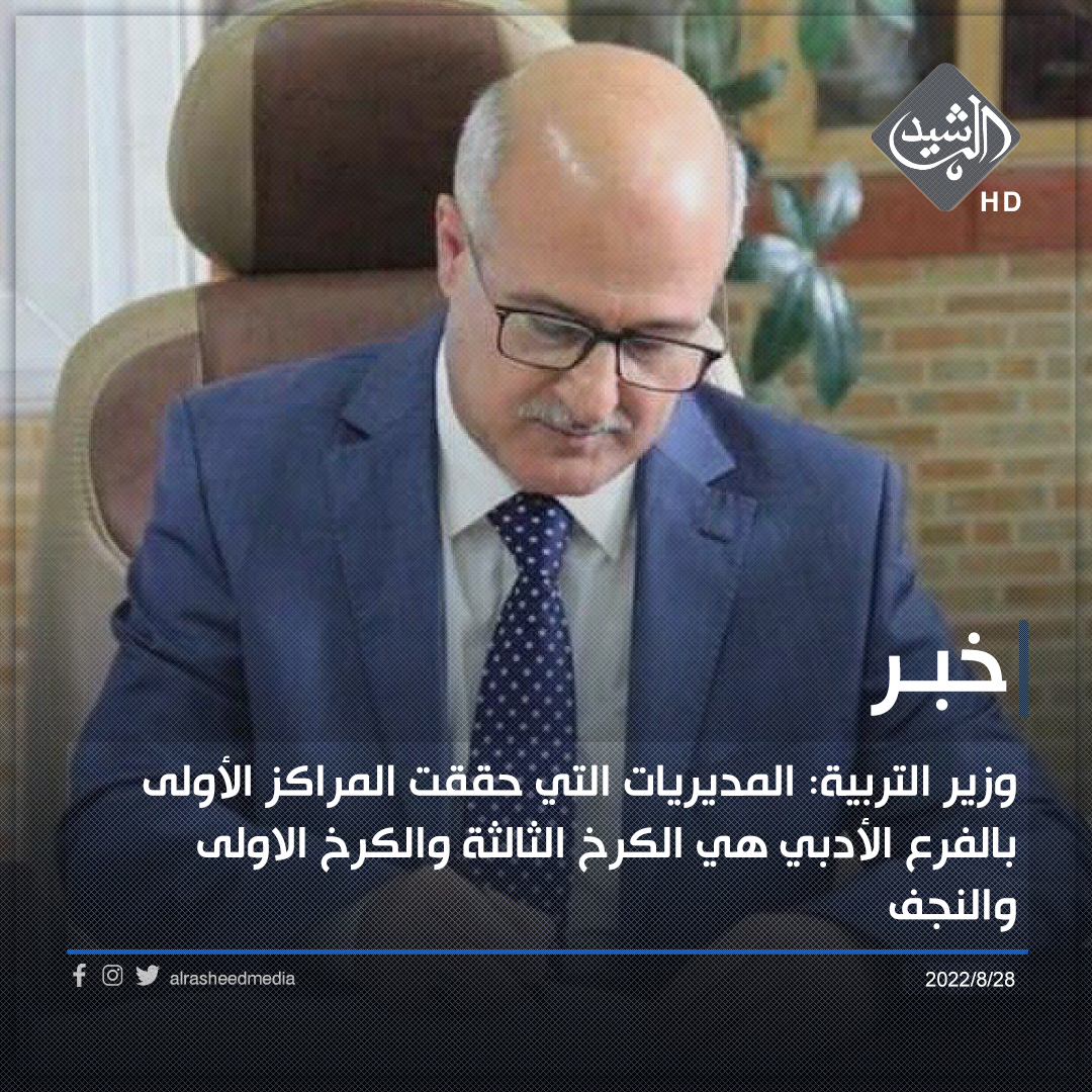 وزير التربية: المديريات التي حققت المراكز الأولى بالفرع الأدبي هي الكرخ الثالثة والكرخ الاولى والنجف