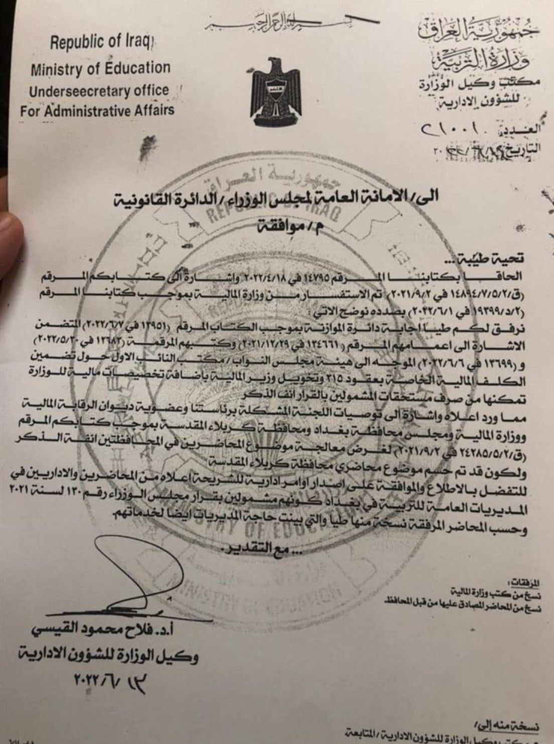 بالوثيقة.. التربية تخاطب الأمانة العامة بشأن إصدار الأوامر الإدارية للمحاضرين والإداريين
