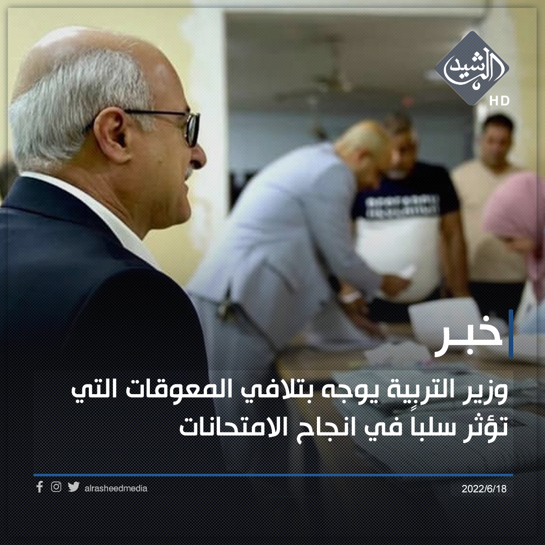 وزير التربية يوجه بتلافي المعوقات التي تؤثر سلباً في انجاح الامتحانات