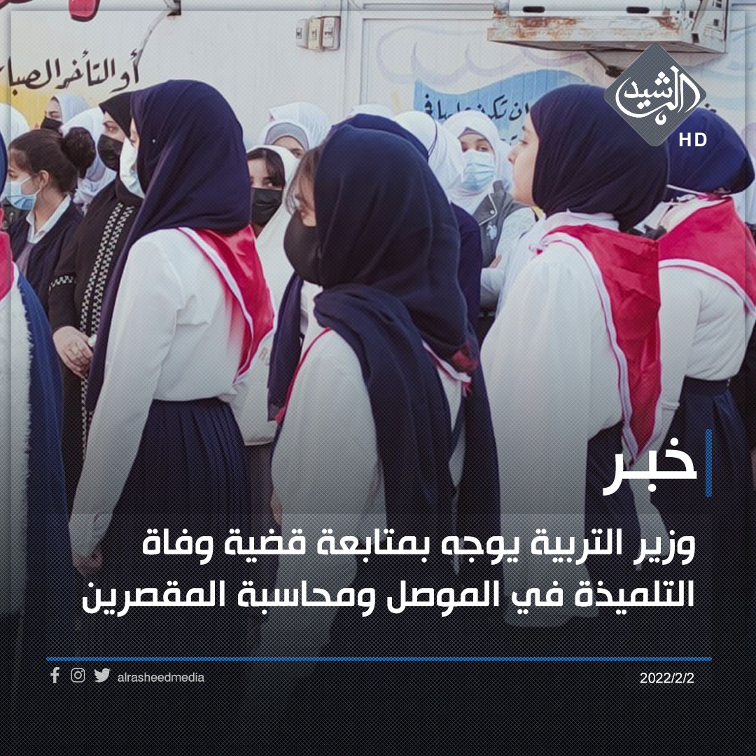 وزير التربية يوجه بمتابعة قضية وفاة التلميذة في الموصل ومحاسبة المقصرين