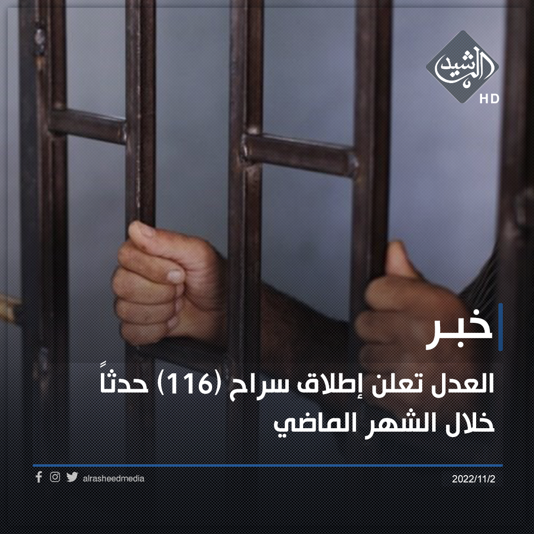 العدل تعلن إطلاق سراح (116) حدثاً خلال الشهر الماضي