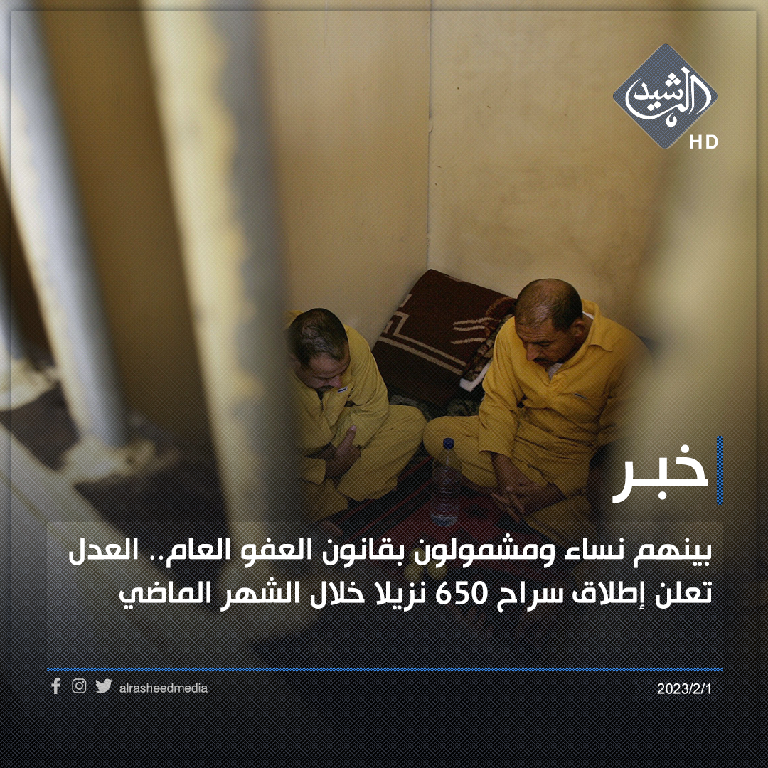 بينهم نساء ومشمولون بقانون العفو العام.. العدل تعلن إطلاق سراح 650 نزيلا خلال الشهر الماضي
