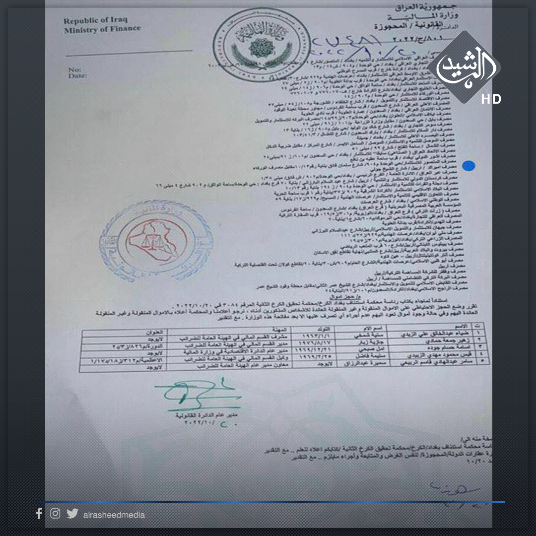 بالوثيقة.. المالية تخاطب النزاهة بفتح تحقيق بسرقة 3.7 ترليون دينار من أمانات الضرائب