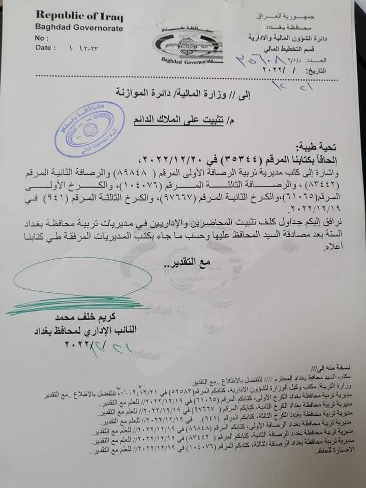بالوثيقة.. إنجاز الكلف المالية لتثبيت المحاضرين في بغداد وارسالها إلى المالية