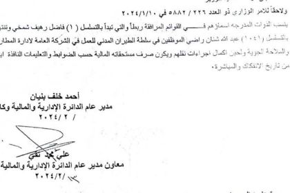 بالوثيقة.. تنسيب أكثر من 1000 موظف إلى الشركة العامة لإدارة المطارات والملاحة الجوية