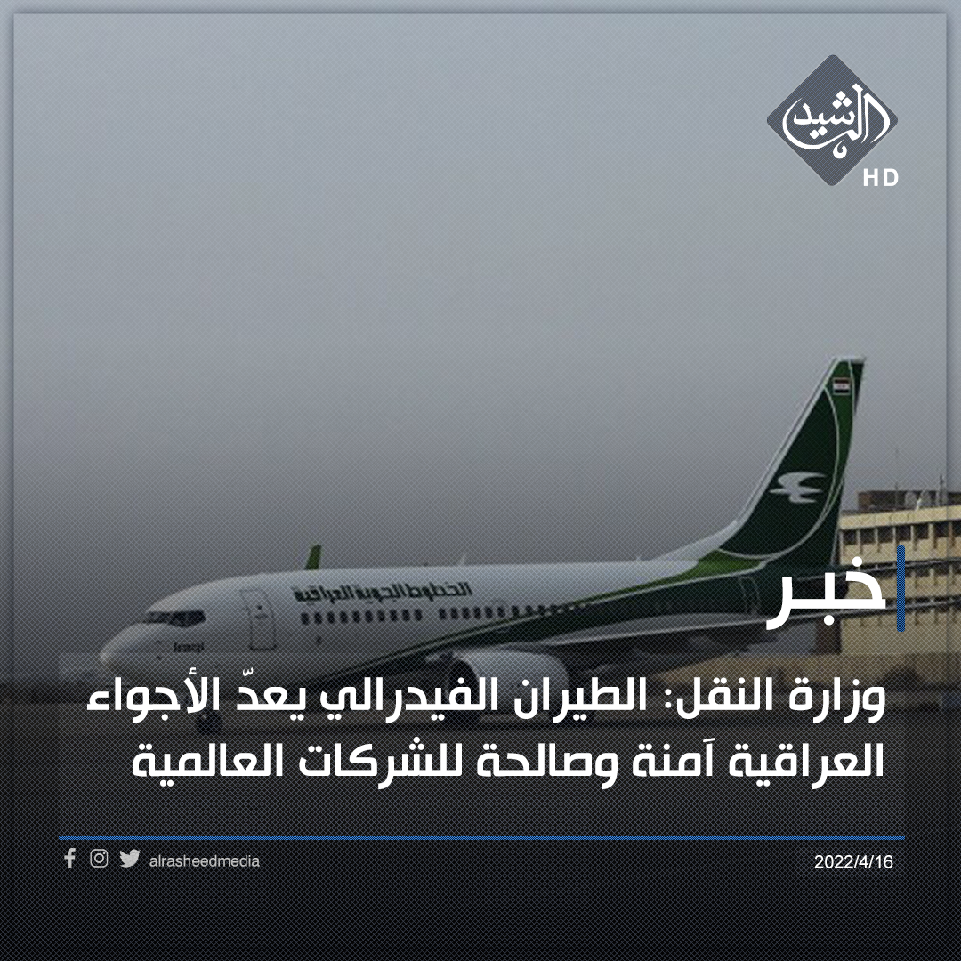 وزارة النقل: الطيران الفيدرالي يعدّ الأجواء العراقية آمنة وصالحة للشركات العالمية
