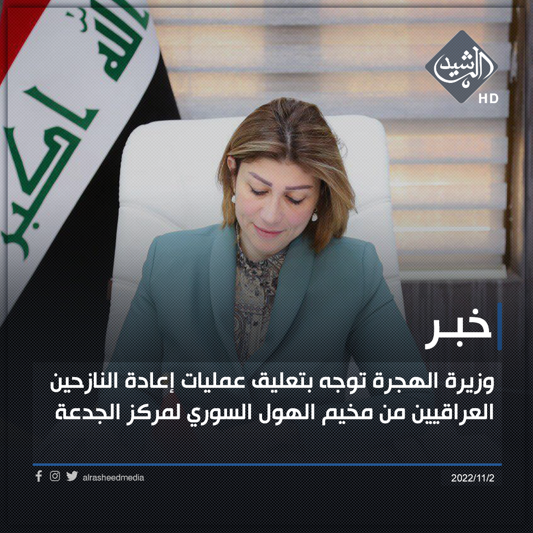 وزيرة الهجرة توجه بتعليق عمليات إعادة النازحين العراقيين من مخيم الهول السوري لمركز الجدعة