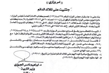 وزير التربية يصادق على تثبيت محاضري ديالى