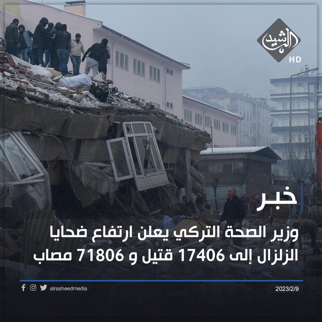وزير الصحة التركي يعلن ارتفاع ضحايا الزلزال إلى 17406 قتيل و 71806 مصاب