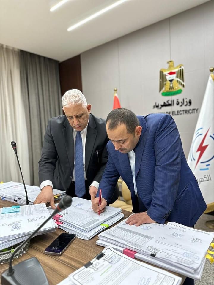 وزير الكهرباء يوقع القوائم والجداول الخاصة بكافة موظفي العقود
