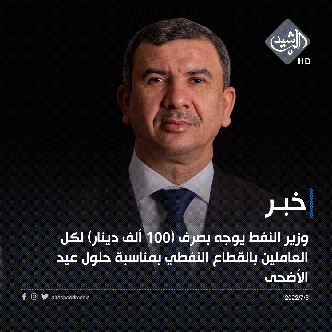 وزير النفط يوجه بصرف (100 ألف دينار) لكل العاملين بالقطاع النفطي بمناسبة حلول عيد الأضحى