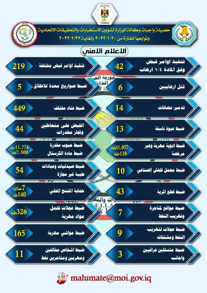 حصيلة واجبات وكالة الاستخبارات والتحقيقات الاتحادية خلال اسبوعين