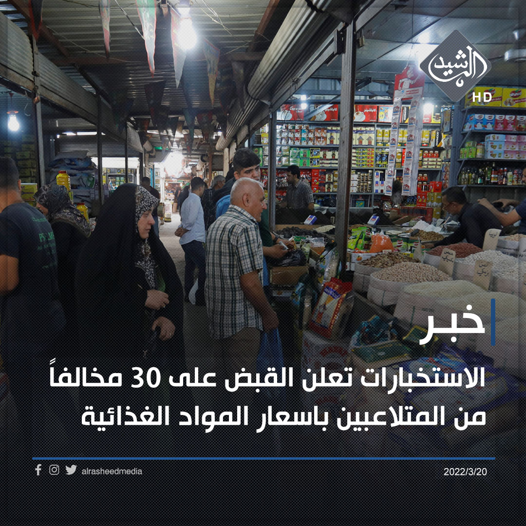 الاستخبارات تعلن القبض على 30 مخالفاً من المتلاعبين باسعار المواد الغذائية