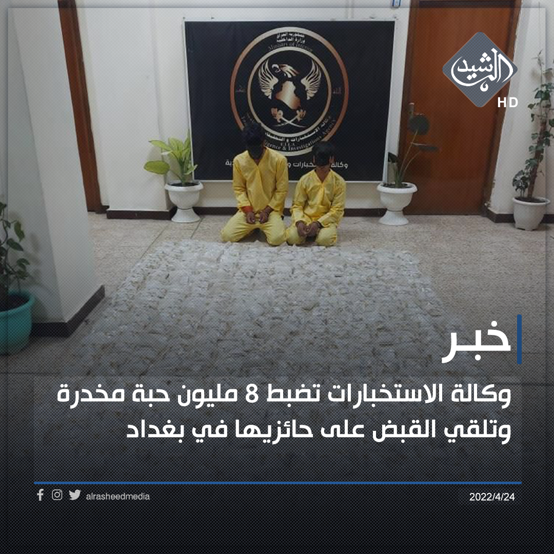 وكالة الاستخبارات تضبط 8 مليون حبة مخدرة وتلقي القبض على حائزيها في بغداد