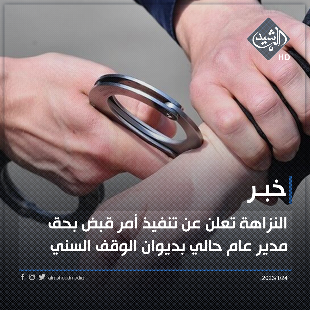 النزاهة تعلن عن تنفيذ أمر قبض بحق مدير عام حالي بديوان الوقف السني