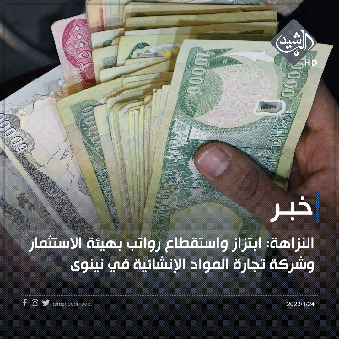 النزاهة: ابتزاز واستقطاع رواتب بهيئة الاستثمار وشركة تجارة المواد الإنشائية في نينوى
