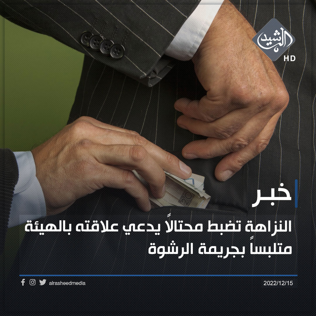 النزاهة تضبط محتالاً يدعي علاقته بالهيئة متلبساً بجريمة الرشوة