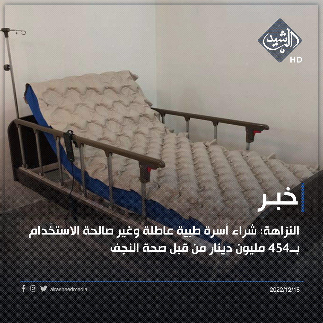 النزاهة: شراء أسرة طبية عاطلة وغير صالحة الاستخدام بــ454 مليون دينار من قبل صحة النجف