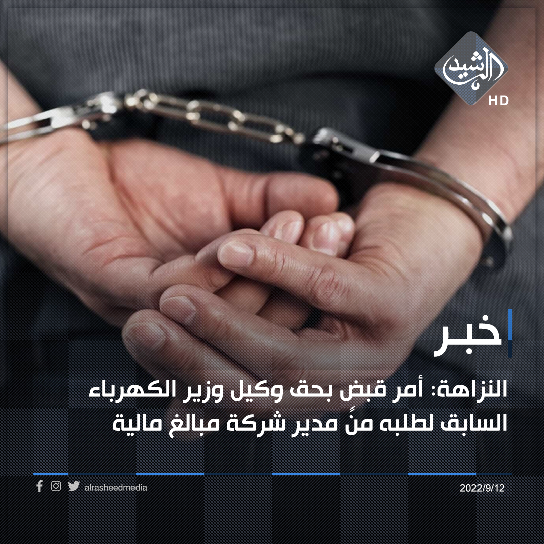 النزاهة: أمر قبضٍ بحق وكيل وزير الكهرباء السابق لطلبه من مدير شركة مبالغ مالية