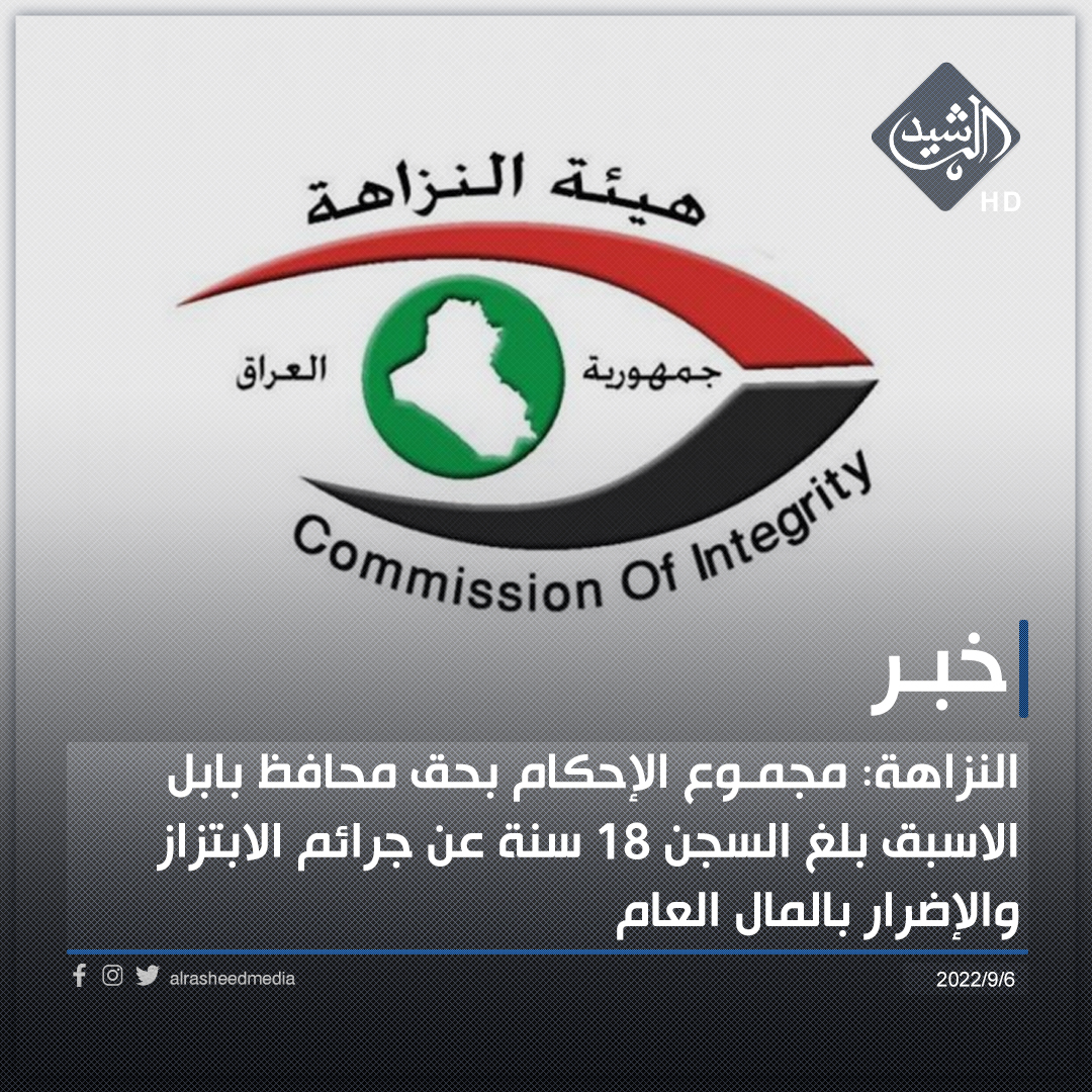 النزاهة: صـدور (5) قرارات إدانة بحق محـافظ بابل الأسبق