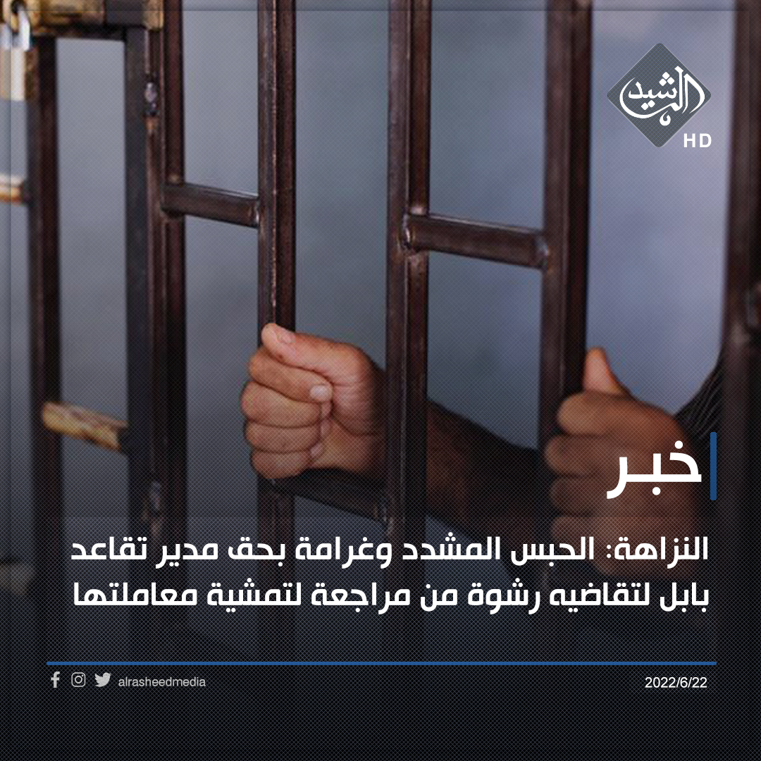 النزاهة: الحبس المشدد وغرامة بحق مدير تقاعد بابل لتقاضيه رشوة من مراجعة لتمشية معاملتها