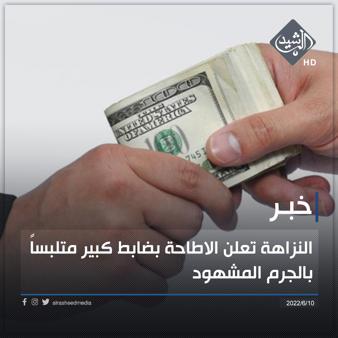 النزاهة تعلن الاطاحة بضابط كبير متلبساً بالجرم المشهود