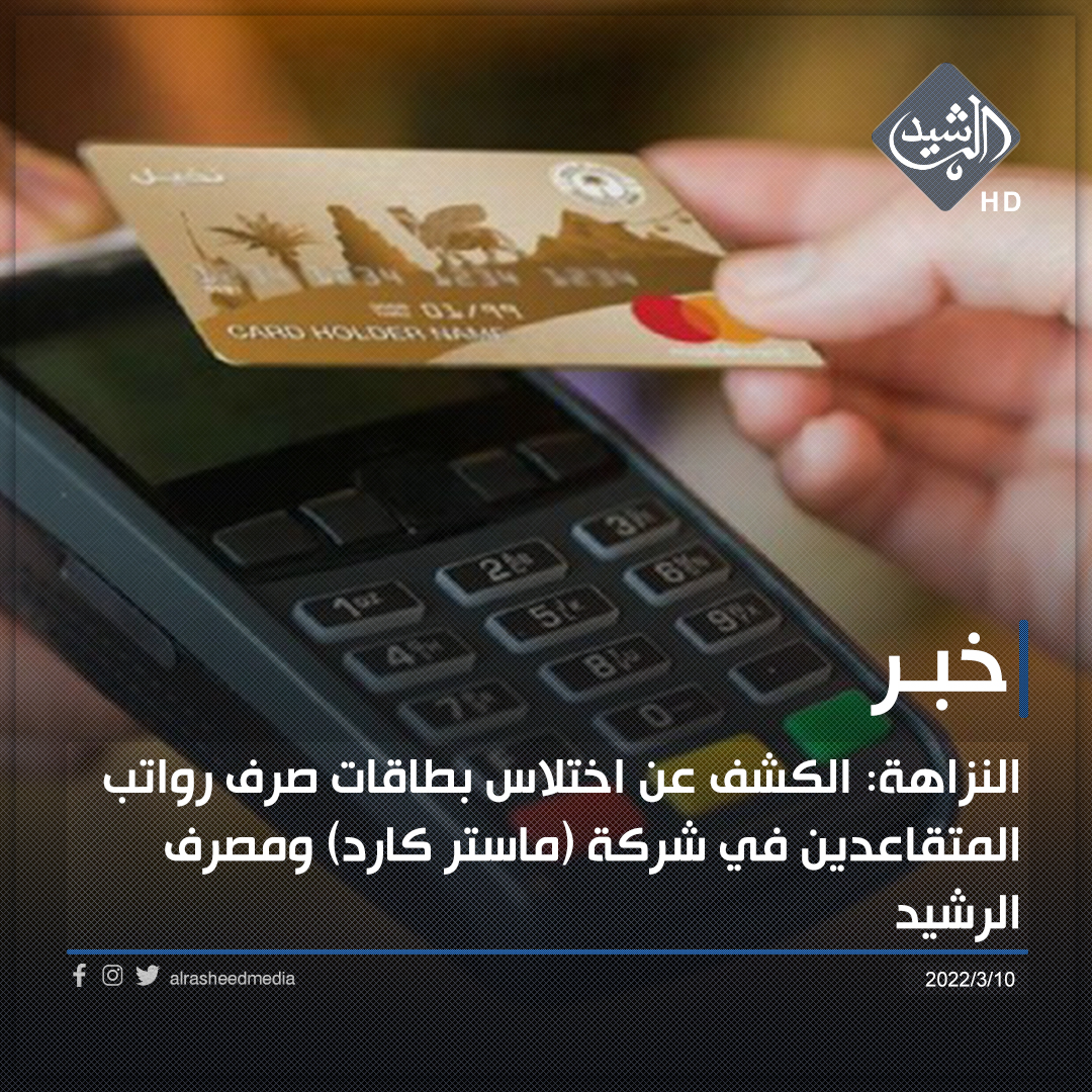 النزاهة: الكشف عن اختلاس بطاقات صرف رواتب المتقاعدين في شركة (ماستر كارد) ومصرف الرشيد