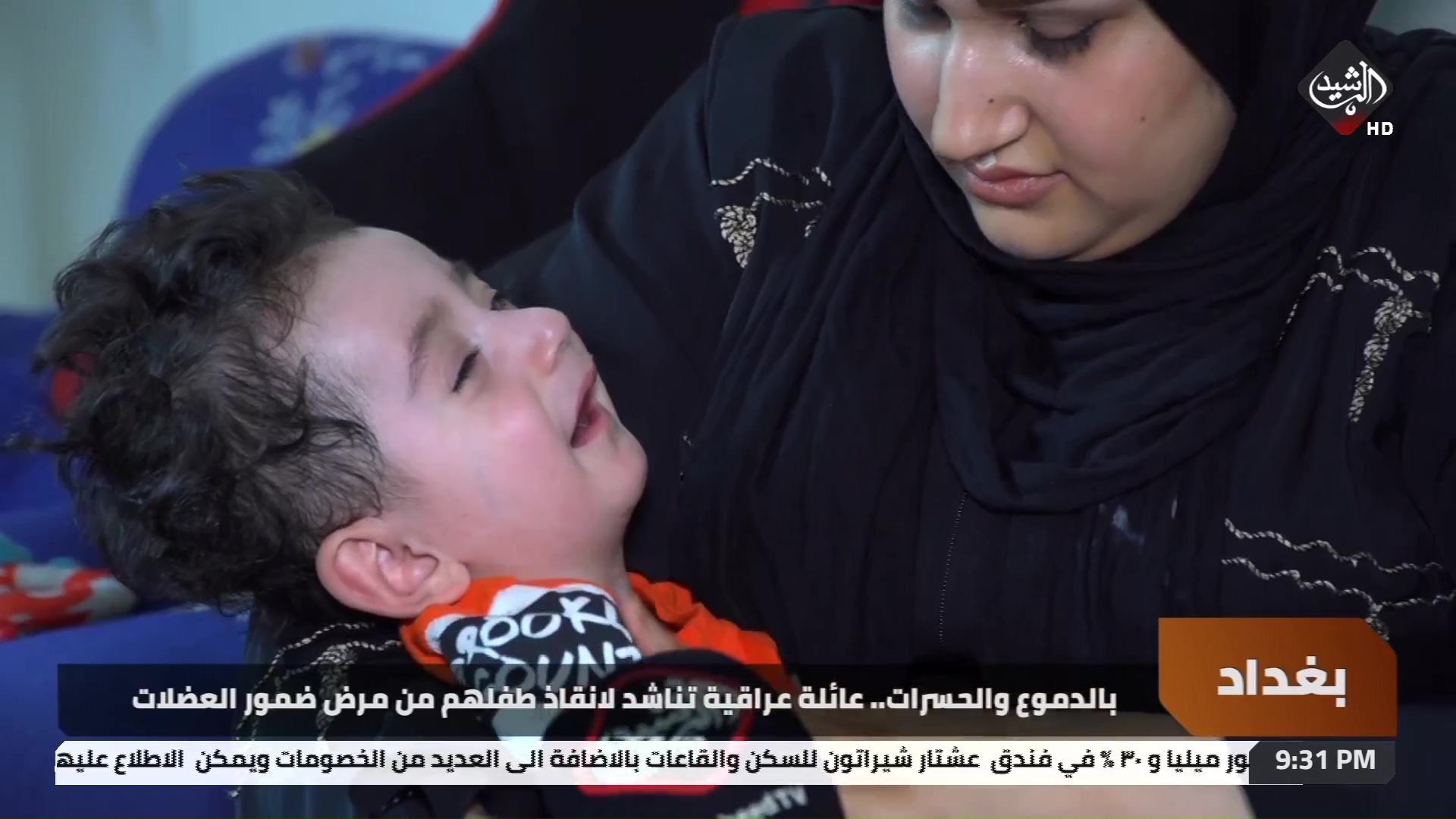 بالدموع والحسرات.. عائلة عراقية تناشد لانقاذ طفلهم من مرض ضمور العضلات