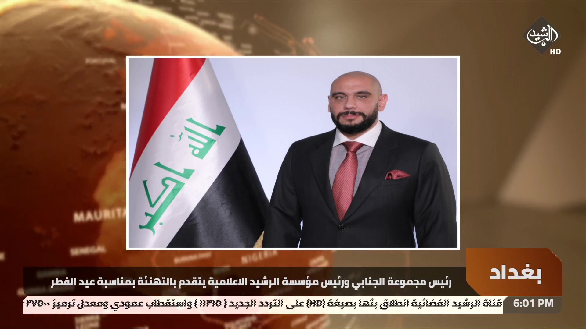 رئيس مجموعة الجنابي ورئيس مؤسسة الرشيد الاعلامية عبدالله الجنابي يتقدم بالتهنئة بمناسبة عيد الفطر