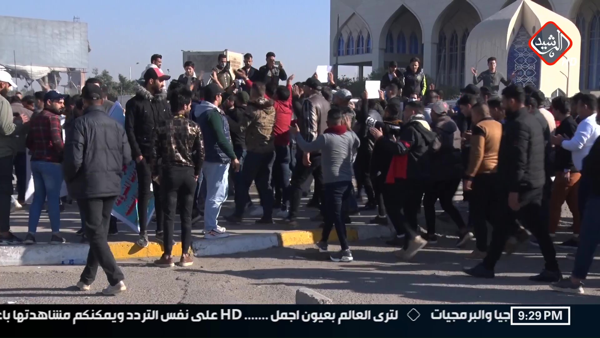 للمطالبة بصرف رواتبهم المتأخرة.. عقود واجور الكهرباء يتظاهرون أمام بوابة المنطقة الخضراء