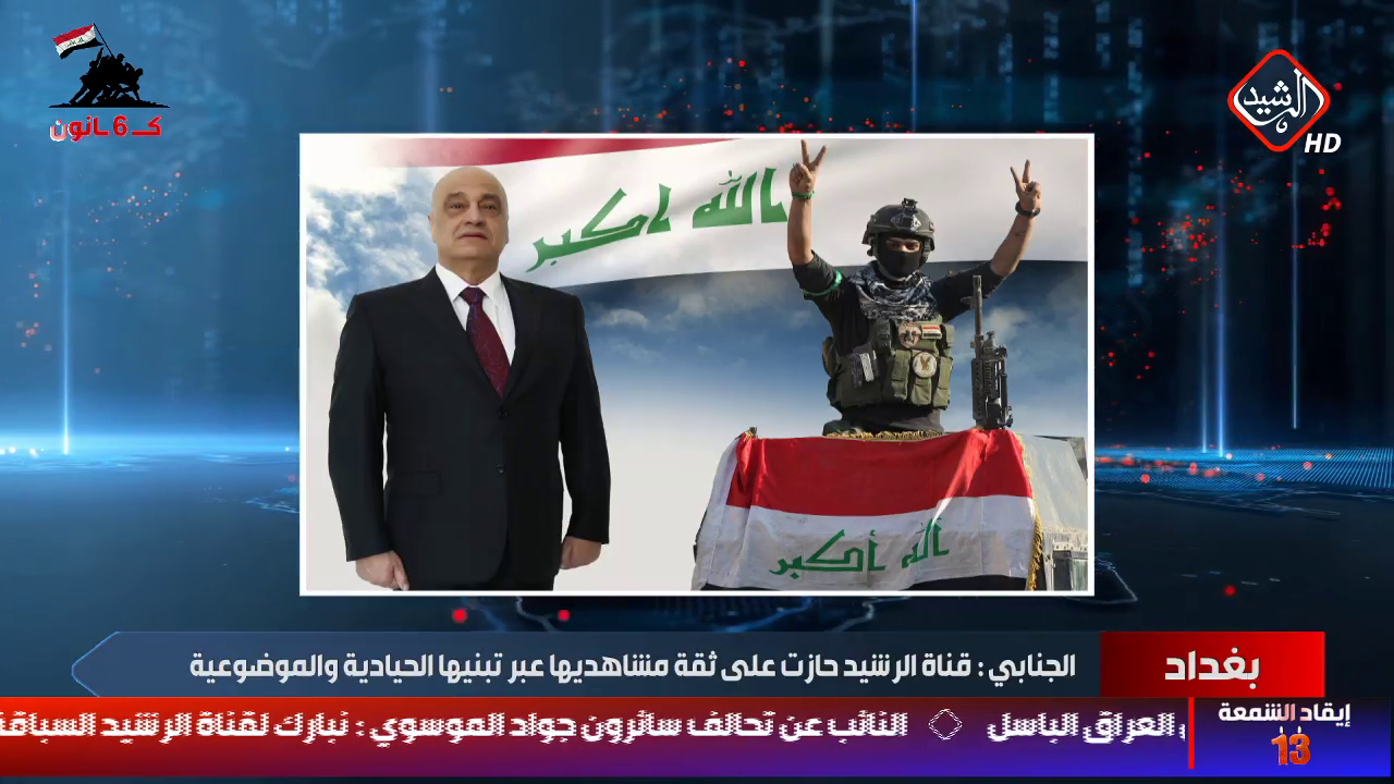 رئيس حزب التجمع الجمهوري العراقي سعد عاصم الجنابي يهنئ قناة الرشيد بذكرى تأسيسها