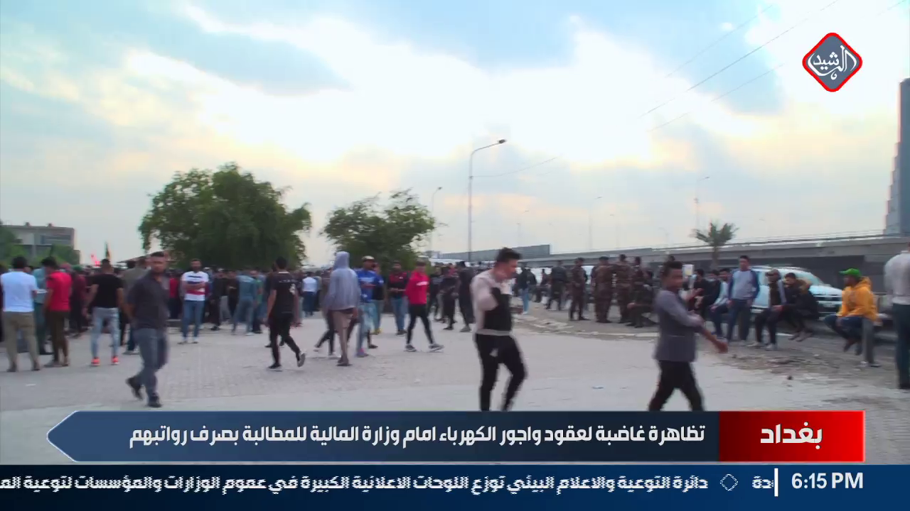 تظاهرة غاضبة لعقود واجور الكهرباء امام وزارة المالية للمطالبة بصرف رواتبهم