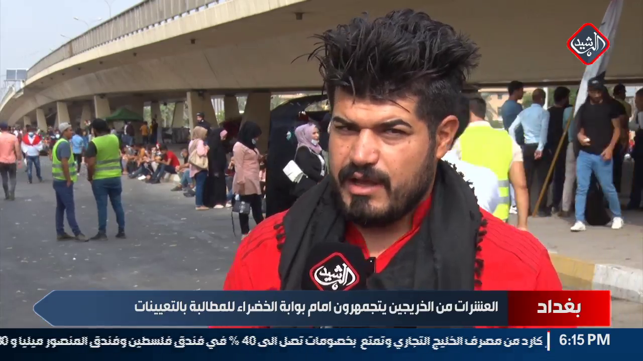 العشرات من الخريجين يتجمهرون امام بوابة الخضراء للمطالبة بالتعيينات