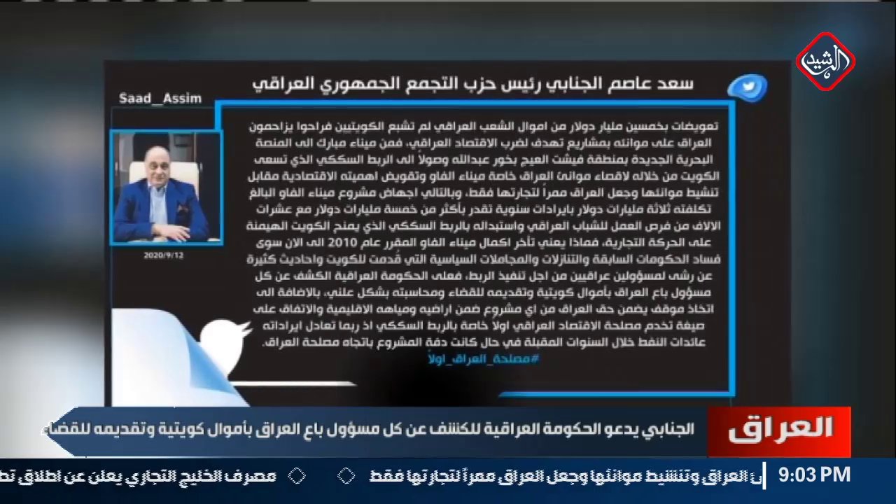 الجنابي يدعو الحكومة العراقية للكشف عن كل مسؤول باع العراق بأموال كويتية وتقديمه للقضاء
